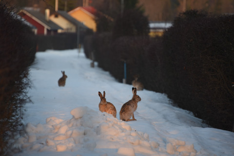 Brown hares. Photo: Mervi Kunnasranta.