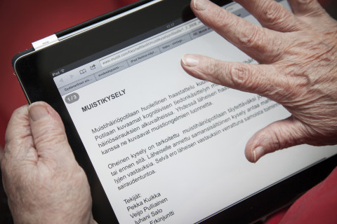 Muistikysely tablettitietokoneen näytöllä