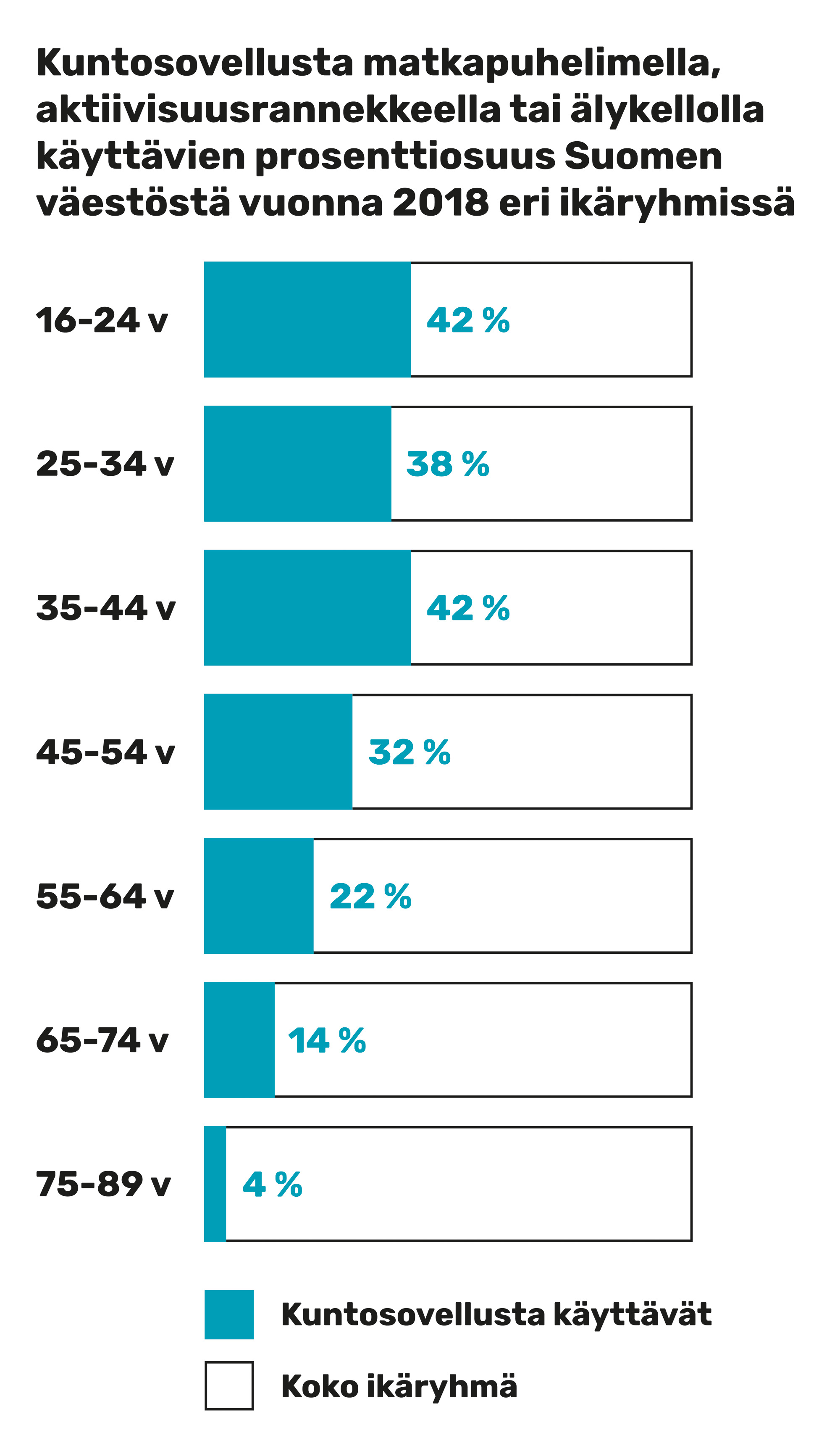 Kuluttajille myytäviin hyvinvointilaitteisiin ja niiden keräämän datan oikeellisuuteen ei nimittäin kohdistu yhtä tiukkoja vaatimuksia kuin lääkinnällisiin laitteisiin, joita käytetään terveydenhuollossa potilaiden hoidon tukena. – Niistä saa silti ainakin suuntaa-antavaa tietoa omasta hyvinvoinnista. Ne auttavat myös karistamaan harhaluuloja, joita monilla on esimerkiksi päivittäisestä aktiivisuudestaan.