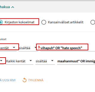 - Erilaisten aineistojen hakeminen