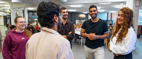 Opiskelijoita Joensuun kampusrakennuksen edessä